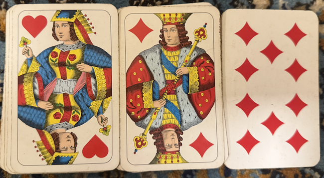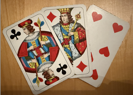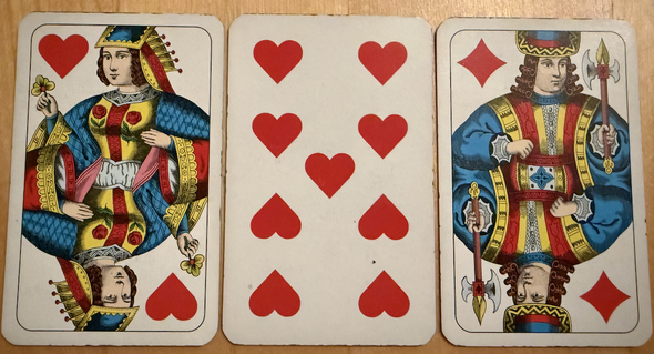 Herz As verkehrt, Kreuz Neun als 2. Karte dazu gefallen